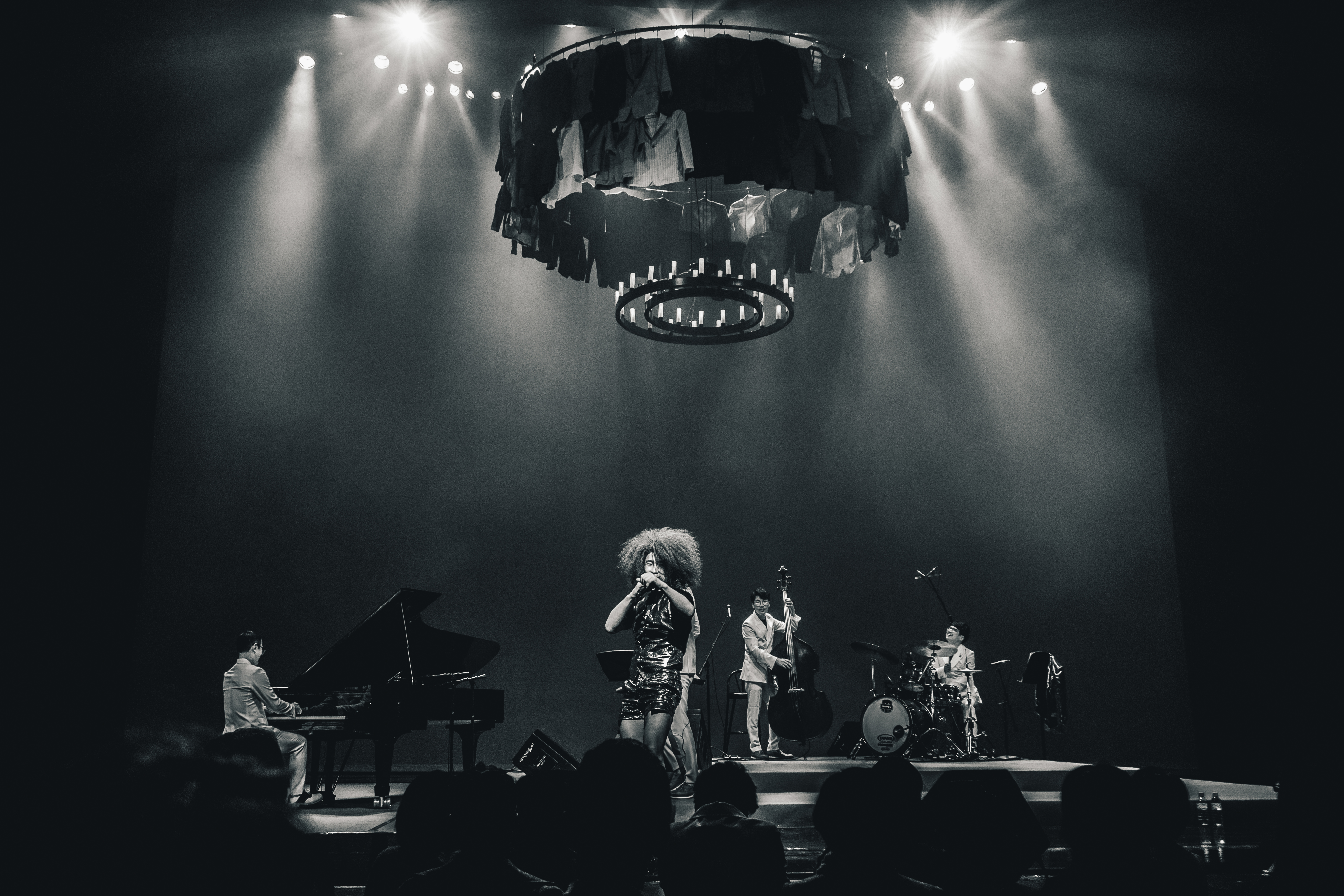 Korean Men is a perfect musical harmony of East and West that included a reinterpretation of 9 kinds of minyo, each assigned with a visual idea, unique storytelling and performance. By rearranging the most famous minyo, ‘Jabga,’ with jazz vocabularies, the company is discovering a musical apparatus that clearly portrays the sensibilities of Jabga. The bluesy arrangement of the mournful song, ‘A Widow’s Prayer,’ maximizes a feeling of sadness and ‘Cloudy Days in June and July’ about a young servant is arranged in a swing style, making the character come alive as it humorously satirizes the times. Showing both creative energy and virtuosity, the company was acclaimed as ’the best possible collaboration’ expressing a ’new iconic musical language integrating the essential sentiments and musicality of minyo and jazz.’