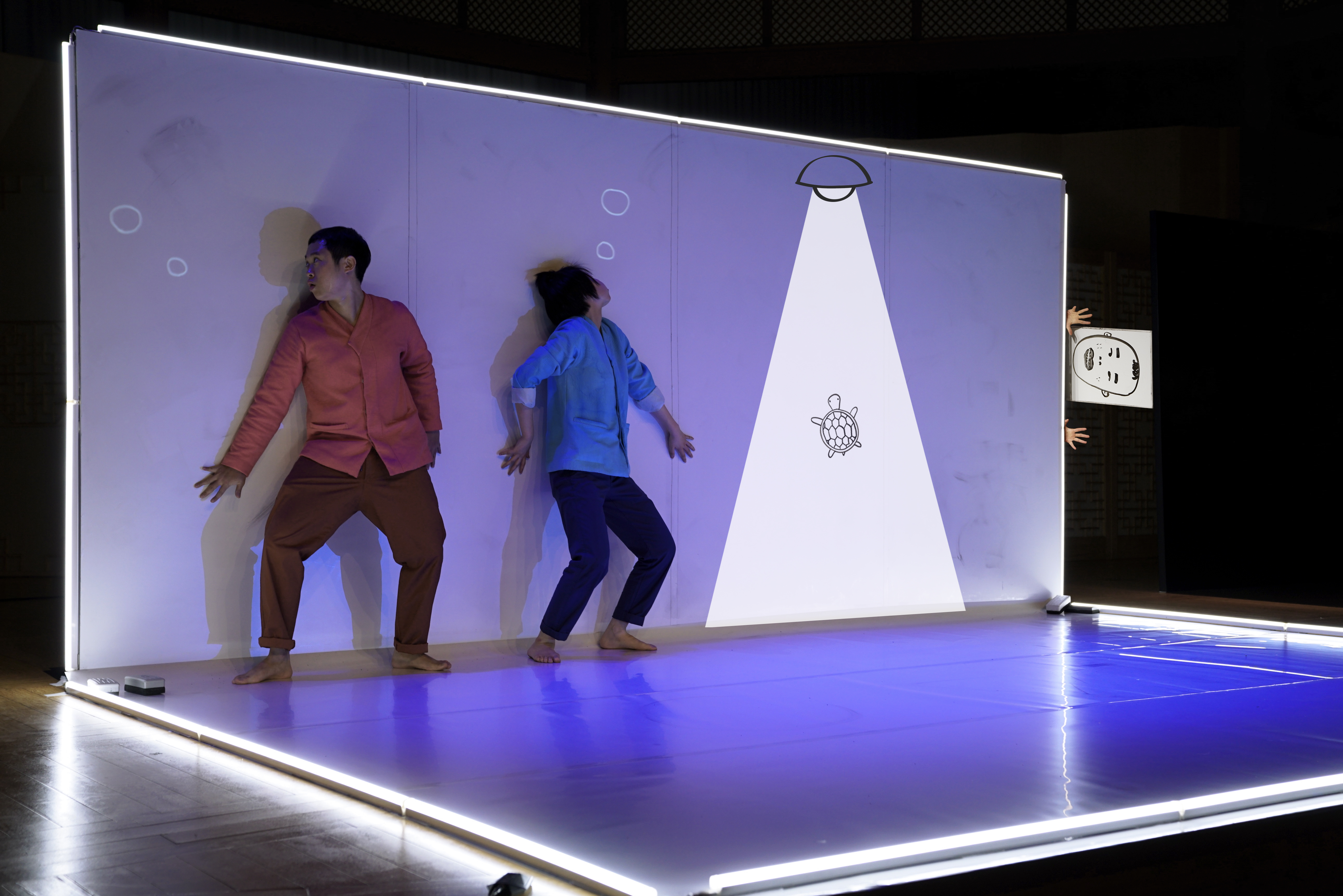 A mischievous duo invites us to the delightful doodling world! They experience first a sea adventure with a tiny little turtle! What will happen to them in this beautiful but scary watery world, and will they return a turtle to the sea safely? What will happen after following their vivid drawings? With live sound effects, stunning animation and an abundance of theatrical imagination, this is a touching and exciting screen show for anyone aged 3+.