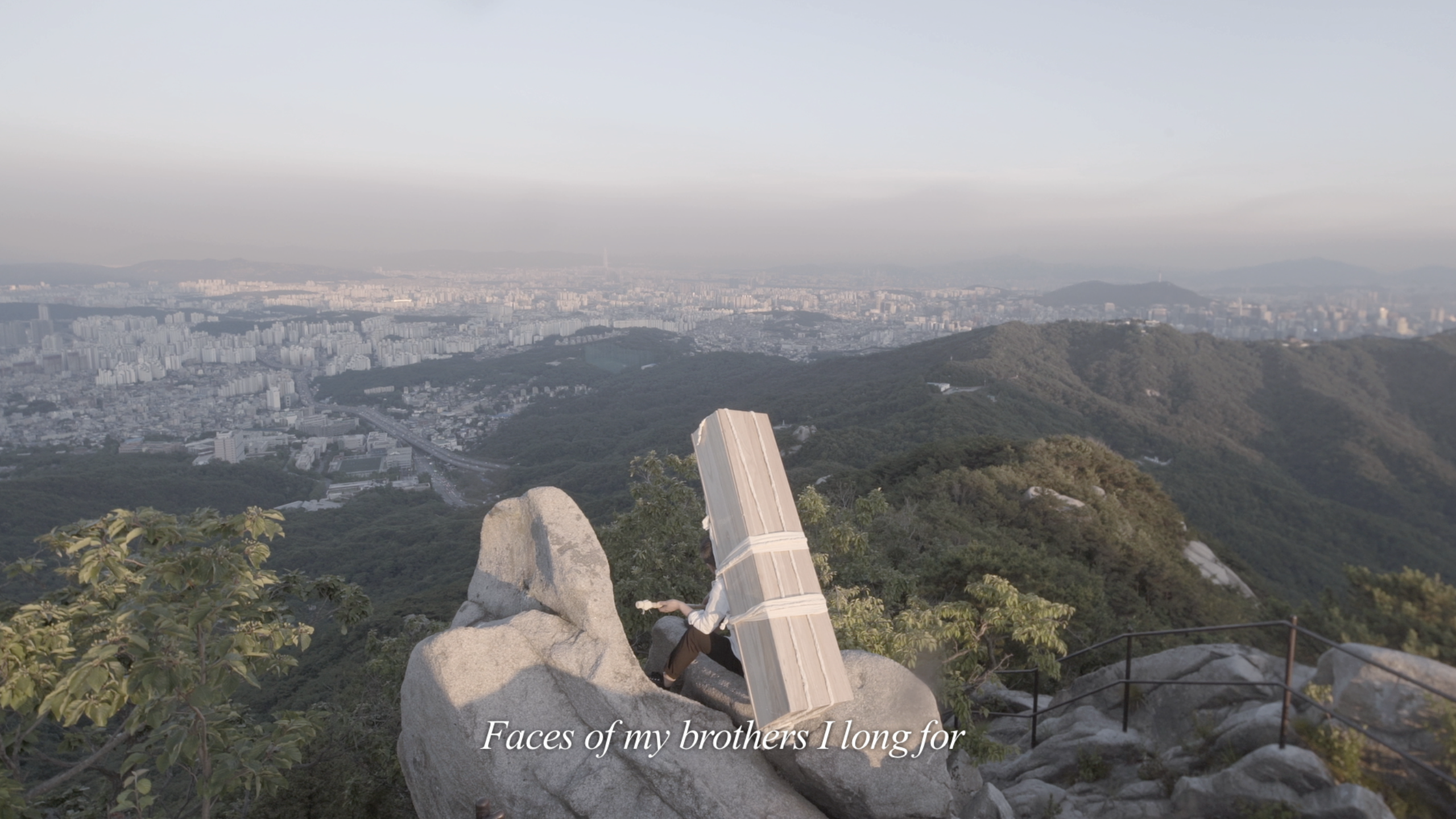 On November 23, 2016, nine months after the closure of the GIC, entrepreneurs staged a funeral ceremony in front of the National Assembly. The performance expressed their hope that the operations of the GIC will be normalized again to resume inter-Korean economic cooperation. This work shows how the con and other objects used in this funeral ceremony are carried up to Brothers Peak. Although time, space and the setting are different, repeating this funeral ceremony in reality also revives it as a form of art. Now it expresses support for the fate of those entrepreneurs that suffered through the closure of the GIC and the workers that had been deployed to the complex asking the audience to join.