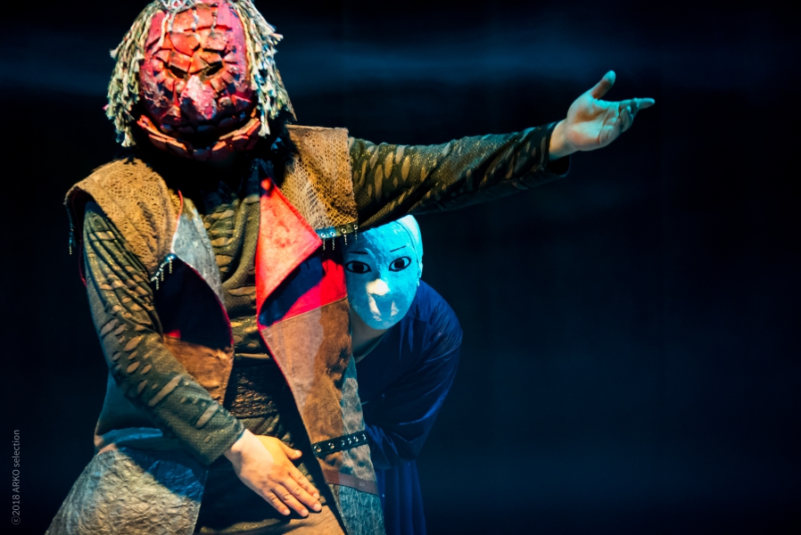 A Korean mask dance called Talchum meets a Western classic by Shakespeare. Othello by Shakespeare has very interesting characters such as Othello, Iago, and Desdemona. The performance describes the scene where Iago tries to separate Othello and Desdemona who are sincerely in love. In this scene, Iago speaks carelessly with exaggerated gesture. The performance’s impudent character and its overall philosophy raise an issue of modern people who are not allowed to relax. Connected to Shakespeare’s classic, the satire of the Korean mask dance is expected to bring about sympathy on the part of today’s audience.