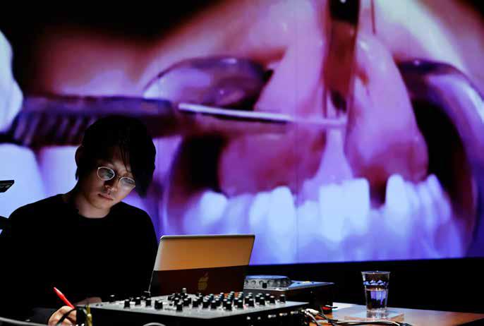 A. My work can be released as an exhibition, as music, or as a performance. It’s not so much that the work’s format or the genre determines what it is, but the focus of the project is more important. As an artist who uses synesthetic media and language to do live art, how I can best show my work is through performance art. Even though the performance language I use is music and video, what is at the base is in the category of theater, and within theater, it’s contemporary theater. And not through a traditional method but a nontraditional method, I bear in mind an unanticipated or unimaginable expandability as I work.