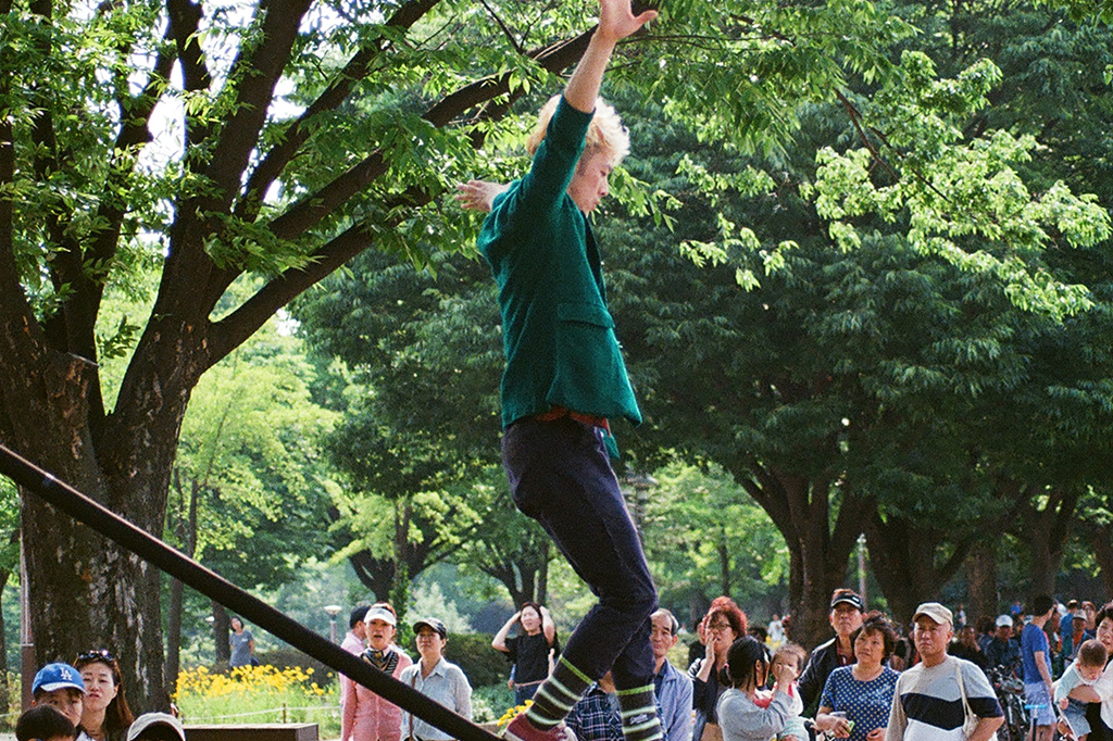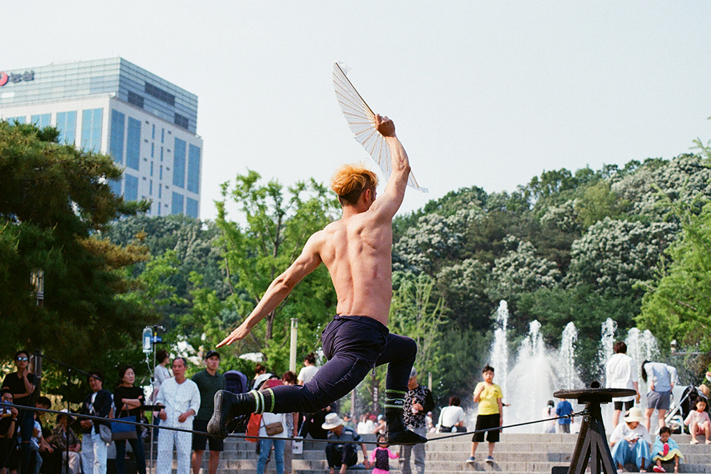 "I, BONG n JOULE" is a work that combines the circus performance of a rod (Chinese pole) and a string (tightwire) with traditional tunes of the gayageum and daegeum. The performance expresses the process of becoming free through repetitive movements such as going up and down. Especially, the melody was improvised in the process of preparing the performance and was integrated into the whole work along with crude lyrics. The man who constantly goes up looks like today’s people living in uncertainty.