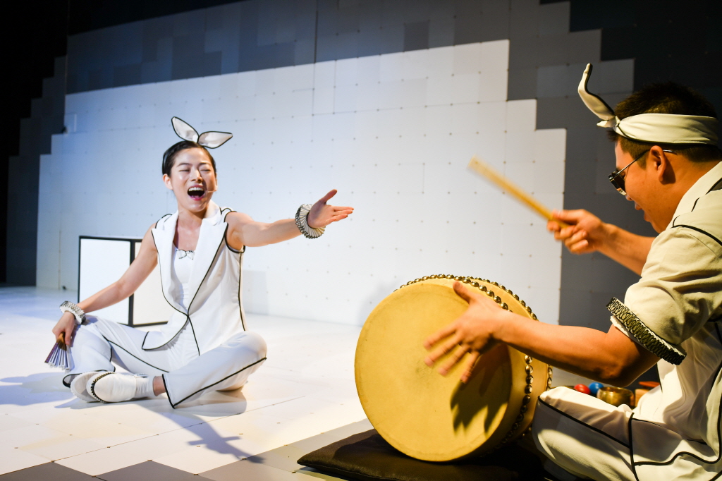 Based on the traditional pansori Sugungga in the style of Misan, Pansori - Sugunggaga JoAhRa (meaning "I love Sugungga") is a fine work of contemporary pansori, transforming its original text into the modern Korean language and reflecting today’s world. While the story’s characters (Rabbit, Turtle, and the Dragon King) stay the same, its plot has been changed significantly. Rather than elaborating on the Rabbit's journey to Sugung, this new story focuses on the hidden stories of the Rabbit and Turtle who struggle to survive in their own way, thus depicting how people live so desperately in this world. It also suggests the opposite or contradictory power: the world of the sea and the earth. The Turtle deceives the Rabbit who fools the Dragon King. The Turtle desperately needs a liver and the Rabbit never gives it. With its satire and humor, Pansori - Sugunggaga JoAhRa reminds us of different aspects in today’s Korea.?The audience meets two rabbits: a storyteller-singer called Gumyong (meaning 'life-saving') Rabbit also known as JoAhRa, and a drummer called Gosu Rabbit. Travelling together, they tell stories, sing and dance, making a fool of the world. Transformed into different characters, JoAhRa guides the audience to react immediately and dynamically.