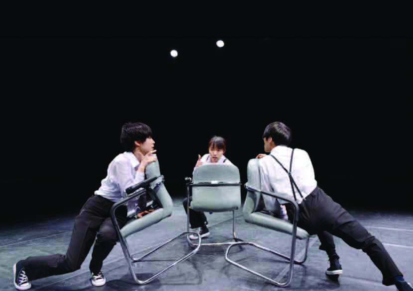 As it is based on improvisation, there’s no staged role but just your own character. Three people appear on stage and take their places to form a triangle. The people on stage do not engage in an active way of dancing. Simply, the person behind repeats exactly what the previous person is doing. No time restriction, no rules about the form. Only a ‘better body imitation’ exists. The confusion about the situation fills up the running time, and you become aware of the passing of time through external stimulus, but after all it is structured so that the decision to extend the situation is made voluntarily.