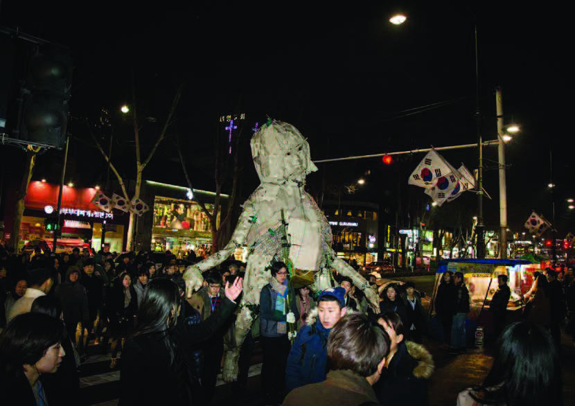 If the former is related to the theme of ‘place’ then the latter represents the issues that are contemplated on by dappertutto studio, concerning the direction we would like to take. After conducting a workshop with the collaborating artist of the moment, the work consists of going to any site and individually working at the site. So each artist gets to showcase his unique performance within the context of one parade. At the same time, I wanted to find a way to keep even the people’s stories unfiltered. To each individual, his own vision will be the priority but it is the people who will watch the performance after all. The idea of being site-specific is important but so is coincidence. The performance can only take place when contradictions coexist.