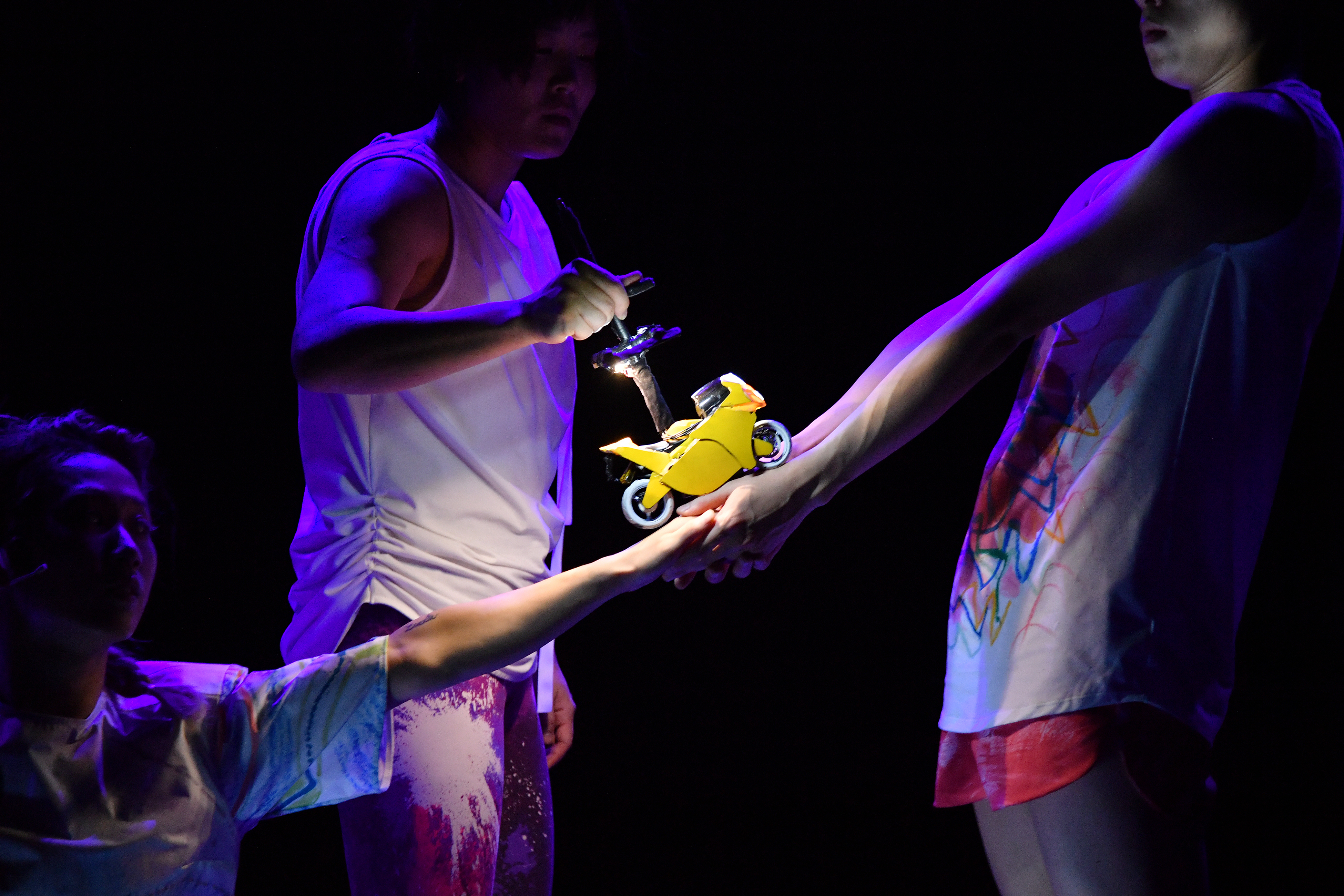 Q: You expanded into theater through projects that visualize all movements of the bodies and objects on the stage. Do you have any experiences with projects on movement that were not tied down to a particular genre? If so, how have such experiences affected the dancing done by LEE K-DANCE?I’ve been working with plays for about 15 years. In short, I believe body movements that are imbued with metaphor and symbolism are more powerful than 100 words. At the moment, I am working on two projects: One is on using abstract beauty and symbols to express performers’ movements in various areas of the performing arts. The other is on accentuating theatrical scenes through not only the performers’ movements but also movements related to objects or stage art. Experiences like these have made me realize that there is no need to keep genres separate with dividing lines — which is right in line with LEE K-DANCE’s endeavors in breaking down such barriers. LEE K-DANCE uses a lot of “everyday” movements. Our productions are a mixture of dance and movement, which I believe is because of the influence of our work with other performing arts.
