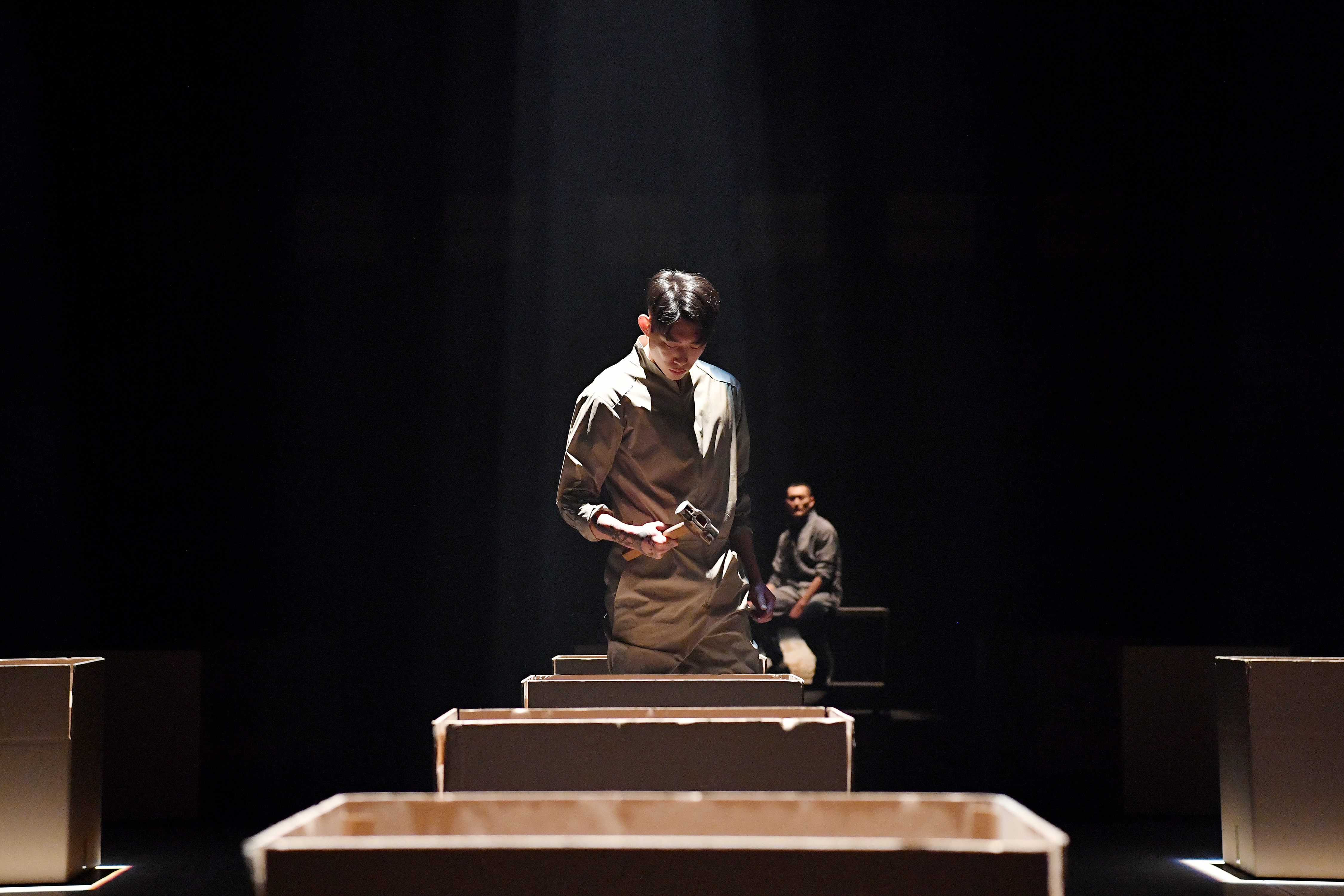 Q: “Burnt Offering,” which is derived from the Old Testament, is a ritual that involves sacrificing live animals. I understand that your take on the burnt offering is different from the Biblical version, which is that the ritual gives humans salvation through the sacrifice of another living thing on their behalf.Jang Hye-rim: In the Old Testament, it was the “fragrance” of the burnt offering that was offered up to (and pleased) God. I was moved by the noble beauty of our version of the burnt offering: in other words, creating meaning from our time spent working and living, through which we progress toward the moment of death. Through this dance, I wanted to convey the message that the viewer’s life has value and is beautiful. At the beginning, the dancers make repetitive lines with charcoal, resulting in the shape of a flower. The gradual blackening of the dancers’ bodies because of the charcoal is a visualization of the “burning” of the previously clean body. I also added the beat of the traditional Korean seungmu and created a rhythm from the sounds of work: you can hear the dancers’ breathing and bodily sounds mixed in with the music. There is a part of the seungmu that involves beating a drum. The repetitive “beating” of drums represented by the dancers’ head lanterns shows how a workers’ repeated actions change over time. The dance is very physically taxing: the dancers are literally covered in sweat by the end. Nevertheless, it allows us to show, on the stage, what physical labor looks like. I also wanted to show that work is not all toil—that there are moments of joy.