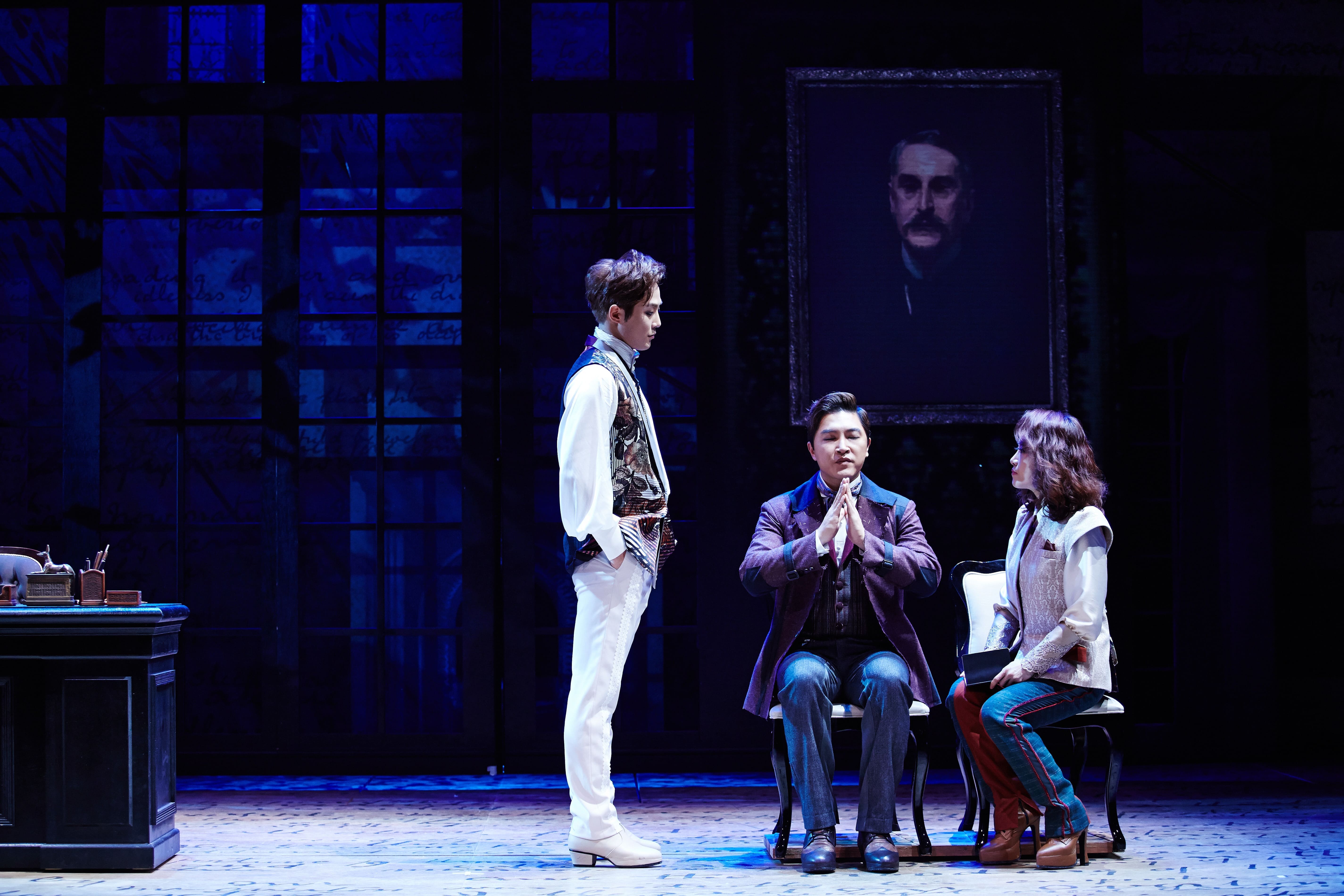 ‘Sherlock Holmes: Secret of the Anderson Family’ isn’t based on the original story by Conan Doyle but it is a creative musical with the author’s original characters: Sherlock Holmes, Dr. Watson and Inspector Lestrade. In the late 19th century in London, a stormy Christmas eve, two gunshots are heard from the house of the Andersons, one of London’s richest families. That night, a woman disappears. Fifteen days later, three men from the Andersons come to Sherlock’s office. Promising to reward him with a huge amount of money, they ask him to look for Lucy Jones, the woman who disappeared. Feeling intuitively that the incident is not simply about a missing person, Sherlock starts investigating the case in earnest. His investigation gradually reveals the Andersons’ secrets that have been hidden in the intricate relationships of one missing person and three clients. The story is intriguing in that it is comparable to finding a way out in a maze, starting from small clues. The musical’s timely and swift change of scenes and lighting also contributes to the speed of the plot.
