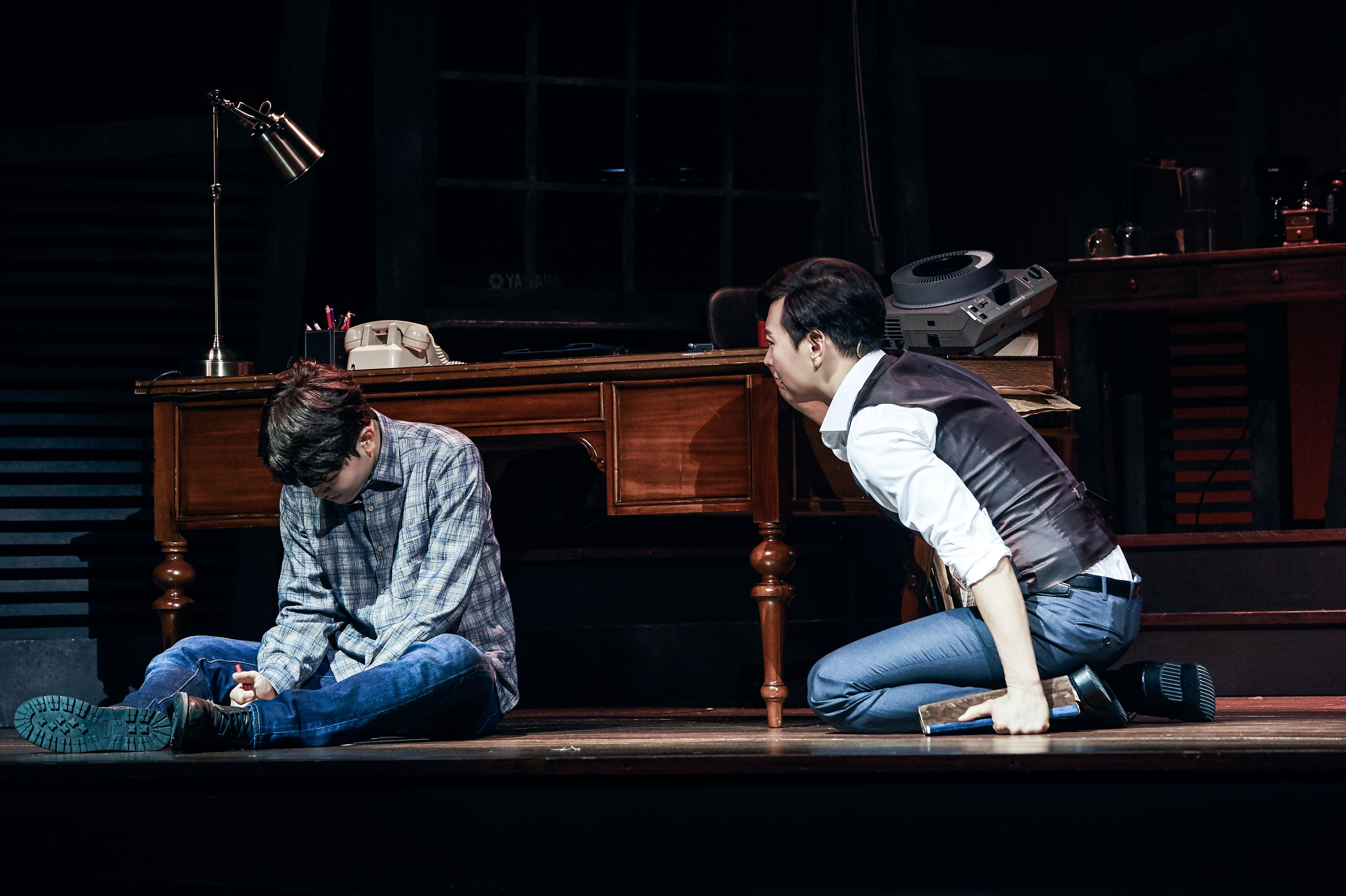 The musical ‘Interview’ is about the psychological game between Eugene Kim, an author of a bestselling detective novel, and Sinclair Gordon, a would-be writer. As Sinclair aspires to be a writer, Eugene gives him a will written by a serial killer who tried to take his own life and asks him to write a novel based on the will. After reading the will, Sinclair writes a story called ‘The Monster in Me’. He then asks Eugene if his novel ‘Death of the Doll’ is based on the story of Joanne Sr. The two men talk about Joanne who died ten years ago and they try to find a link between her death and the recent serial killer. Such a process of investigation unveils what Sinclair suffers from: dissociative identity disorder.
