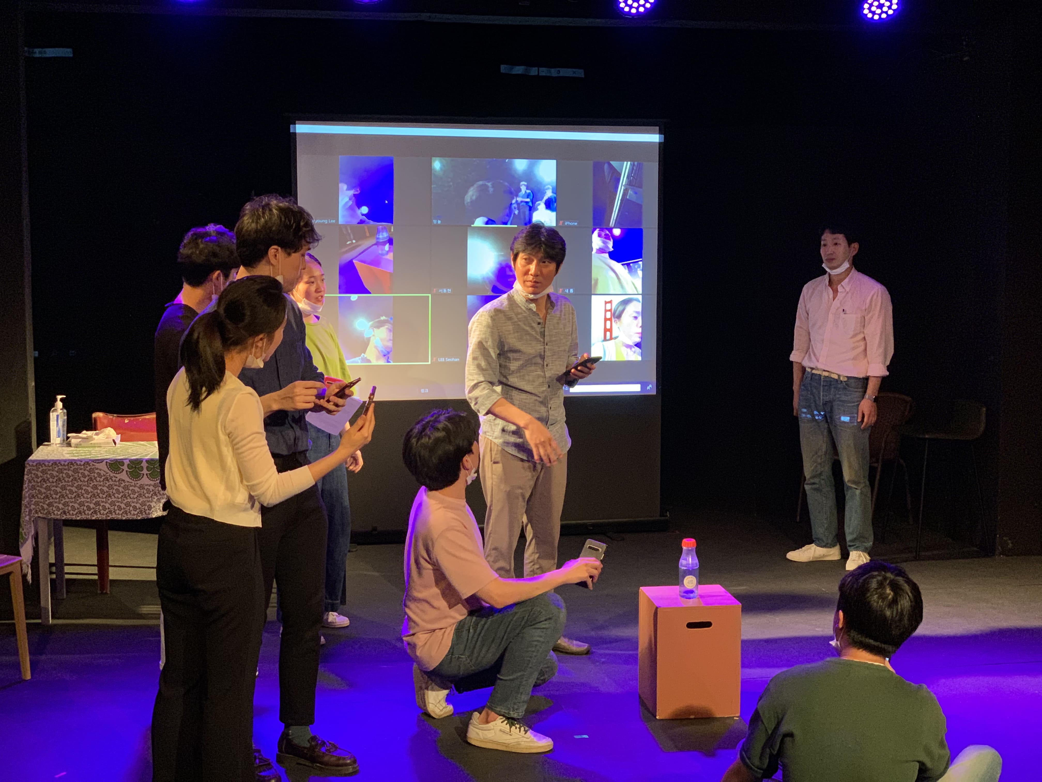 They talk about their different experiences in this time of coronavirus. Sae-rom argued with her mother who told her not to go to the funeral of her close friend’s mother, and Seo-han self-quarantined after a confirmed patient visited the store where he is working part-time. Somebody brings a photo of a joint wedding held with masks on. They are talking and laughing as if these are someone else’s stories, but in fact they are nervous. People are promoting the advantages of ’untact’ and predicting a new way of life - what should we the theatre people do? We’ve gathered solely out of the desire to meet one another, but time goes by, without us quite knowing what to do.