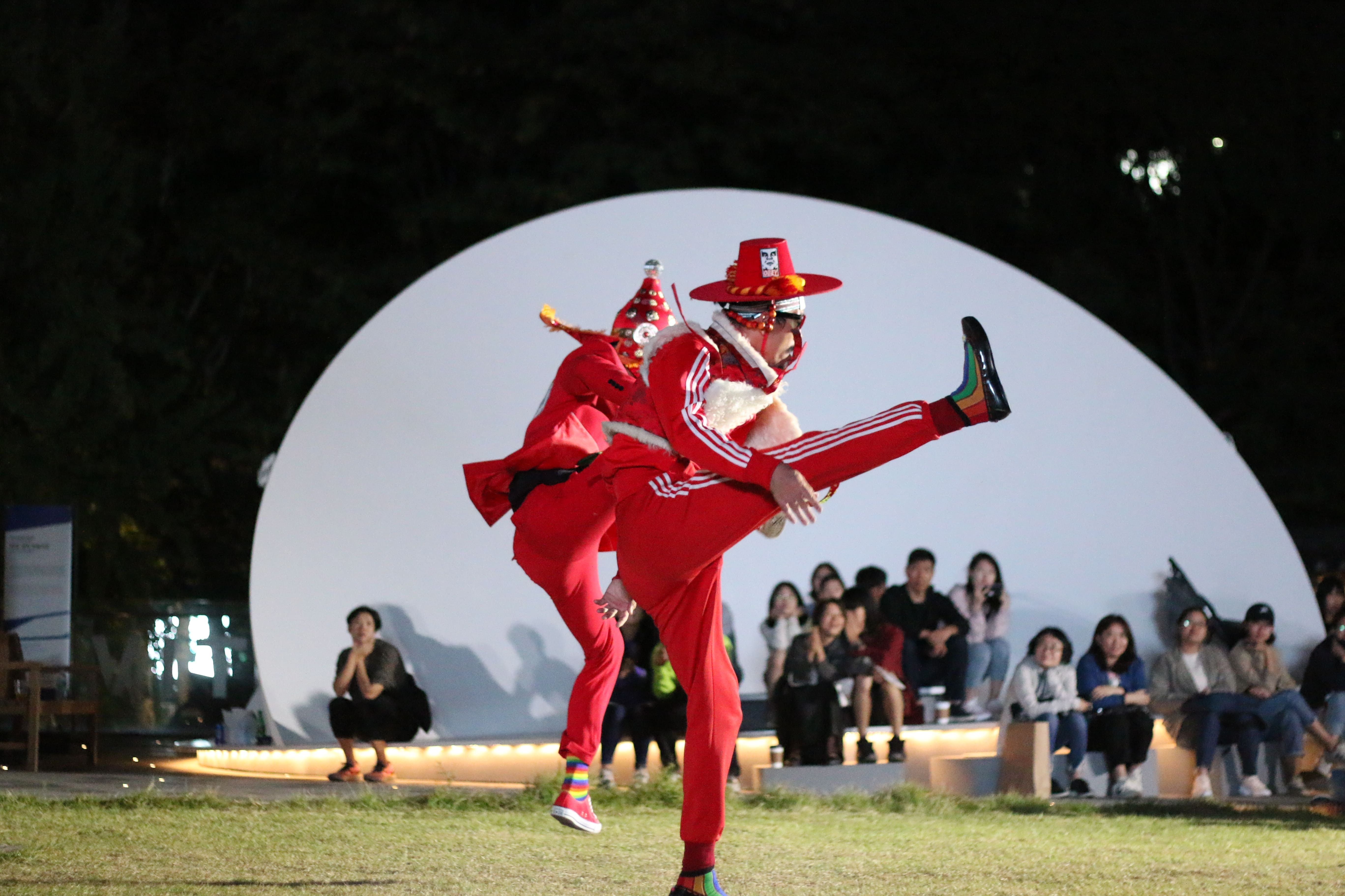 Highly addictive rhythms produced by taepyeongso, sinawi and taryeong induce the heung of Korean traditional sounds, while creating musical synergy with live DJ music. The dancers on stage express unique movements reminiscent of powerful runway walks and engage with the audience through ‘untraditional’ contemporaneous familiarity.
