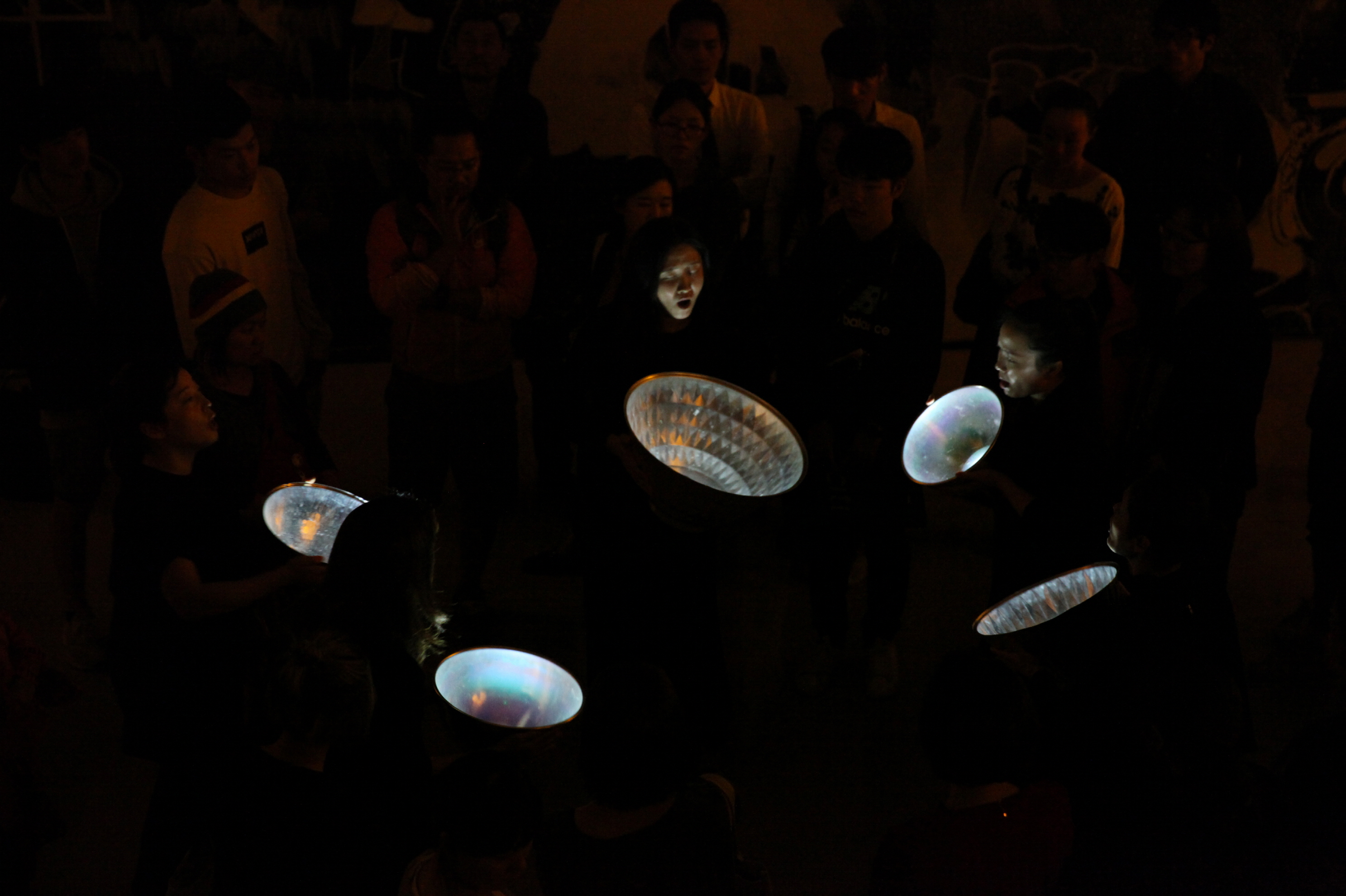 Q. Later on, "Voice Caves in the City" enabled your transition to performances in spaces outside theaters. What is the performance about?KIM Jinyoung: "Voice Caves in the City" is a performance that takes the audience to an unreal place in a city to make them hear the sounds resonating in the space. We performed in several places where sounds resonate like in a primitive cave. We wanted to provide the audience with a sensitive experience through which they could feel certain primitive power. So the performance has many ritual elements. As for our previous performances at theaters, we used sound equipment. But since "Voice Caves in the City", we have mostly performed only with the resonation of our own voices. That is because we came to think that we could make a space resonate so that it could replace the expansion of sounds through microphones and speakers. The audience of this performance first listens to sounds in an unreal space. In the middle of the performance, they move to a very real space to listen to daily sounds. At that point, they hear the sounds they have always heard with different senses. This is something like a time difference. The audience then come back to the cave and see the end of the performance by attending a sound rite together. We wanted to find an interesting point where an unexpected daily space becomes a place full of resonating sounds and ritual elements.