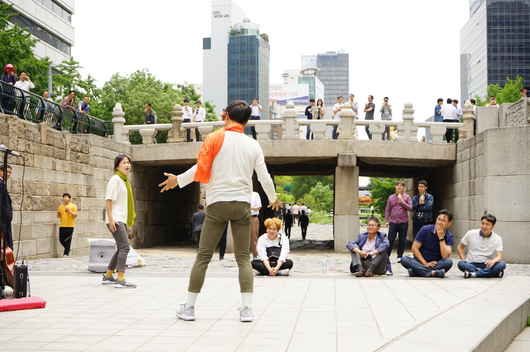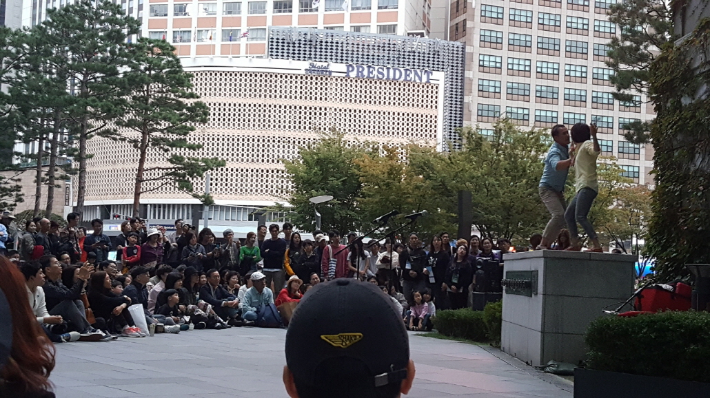 KIM Seung-eon: In fact, we performed at the Seoul Fringe Festival even though we hadn’t completed the work. At that time, all we wanted to do was to share the message that “it is hard to survive.” Looking back, the performance was completed at about 50% but the audience reacted to it positively. That seems to be the strength of the “fringe” platform. In other words, it is where we could feel out if something will work. Based on that experience, we were able to perform again at the Seoul Street Arts Festival in 2017. The festival platform gave me feedback in diverse ways and thanks to that, we came to make a more sophisticated work. I believe that the Korean street arts scene has greatly developed in terms of genres, compared to the period when we first performed at a festival. We are stimulated positively and “Would You Mind Project” keeps thinking about how to develop its form.