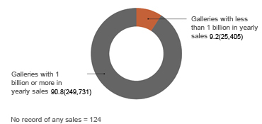 *Based on galleries that reported in the affirmative to an artwork sales survey conducted in 2011 and 2012