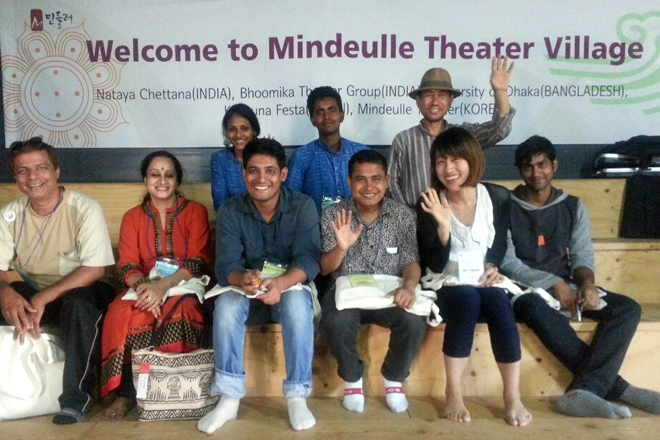 The writer stayed for a total of 22 days at the Mindulle Theater Village from June 29 to July 20 as the international coordinator cum participating artist for the residency project and the entire festival. In the words of Director Song In-hyeon, the start of the residency project was “simply a gathering of artists where you could not tell what would take place, you just watched them (do their thing).” The suggested topic was “Asian Theater Art Finding a New Identity.” This project’s most unique feature was that it had no director, and all participating artists had equal input, placing emphasis on how actively they would step into their role. A total of eleven artists hailing from India, Bangladesh, Japan, and Korea collaborated on this project, spending three weeks sharing their talents with each other in a workshop, watching performances, having debates, going on a tour of the area, doing rehearsals, and so on. The grand finale to the festival was 〈Kaleidoscope〉, a creation of both the participants and the organizers. The performance used India’s traditional myth as a background and combined movements from traditional Korean dance, staging three productions in all: 〈Heonsin(The Path of Devotion)〉; 〈Water〉 with a variety of playful movements forming a witty portrayal of the relationship between humans and nature; and the modern production 〈Birthday Party〉, which plays on the motif of observing a grandfather’s life in the village.