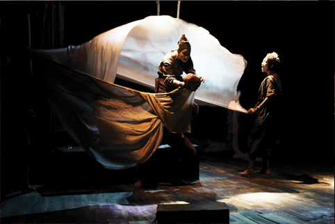 *** “Tale of Haruk” is based on a Korean myth and features masks and puppets. Performance Group Tuida’s second production, It’s about the profound love parents have for their children. Finely crafted props, imaginative puppet movements, and five musicians using props to perform music and make comical actions add vitality to the piece. It won the best production, best script, best art production, and best performer awards at Seoul’s 2002 ASSITEJ Festival. The play is still being performed at home and abroad and most recently has won the best production and the young critics’ prizes at Russia’s international Theatre King Festival in 2009.