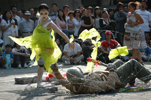 Their vitality. Energy is the common feature in all street performances. Performers need to shout and music has to be loud since they have to be heard out in the open. Serious and heavy materials need to find other means of communication, because large crowds usually make it difficult to concentrate. Street performances need to meet several conditions, and those conditions can be fulfilled only with lively performances. The purpose of a festival is to give the public a chance to enjoy arts, just like the festival slogan says. Moreover, it is to prove that art is possible even on the streets. In fact, there were a number of pieces that attested to that.