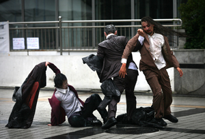 Today’s street performances tend to be experience-based and site-specific, which means that a piece actively incorporates the features of a space. Unlike conventional plays, with specific starting and end points, street performances opt for an open style without a beginning or an end. People wander around to see short scenes depicting one unified theme. This is the kind of work that wins people’s attention, although relevant examples were scarce at our festival this year. Another trend I noticed is that European street art features delicate intricacy rivaling that of indoor plays. This trend is especially apparent in site-specific pieces, which subtly control the lighting and audio, allowing the audience to concentrate on the play. Such plays use non-urban venues, such as a field, a closed-down factory, or an empty lot.