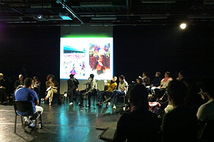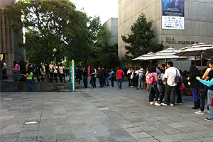 | Mexican audiences waiting for admission | Conversation with the audience before the performance | |
