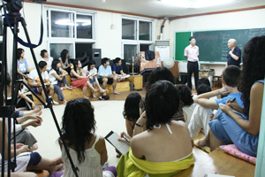 I realized that every members need to improve their skills in order to become a world-class theater company after getting back from Japan. To achieve this mission, it required a lot more training and a space for implementing it. The necessity of living and creative space led us to the Hooyong Performing Arts Centre which was created by converting a closed-down school in Hooyong-ri, Munmak, Wonju. At that time, we tried settling in Hooyong-ri and participating in Avignon Festival all at once, because we believed investing in a space without specific and clear goal was risky. We thought that we can create some synergy by obtaining a space and preparing a performance in Avignon at the same time. The members and I went to Hooyong-ri in 2000 and officially opened the space in 2001. When it was first opened, there was a humble space that was created by knocking down a wall of two classrooms in a closed-down school, but with funding and renovation in 2004, the Hooyong Performing Arts Centre was able to equip itself into the current proper theater.