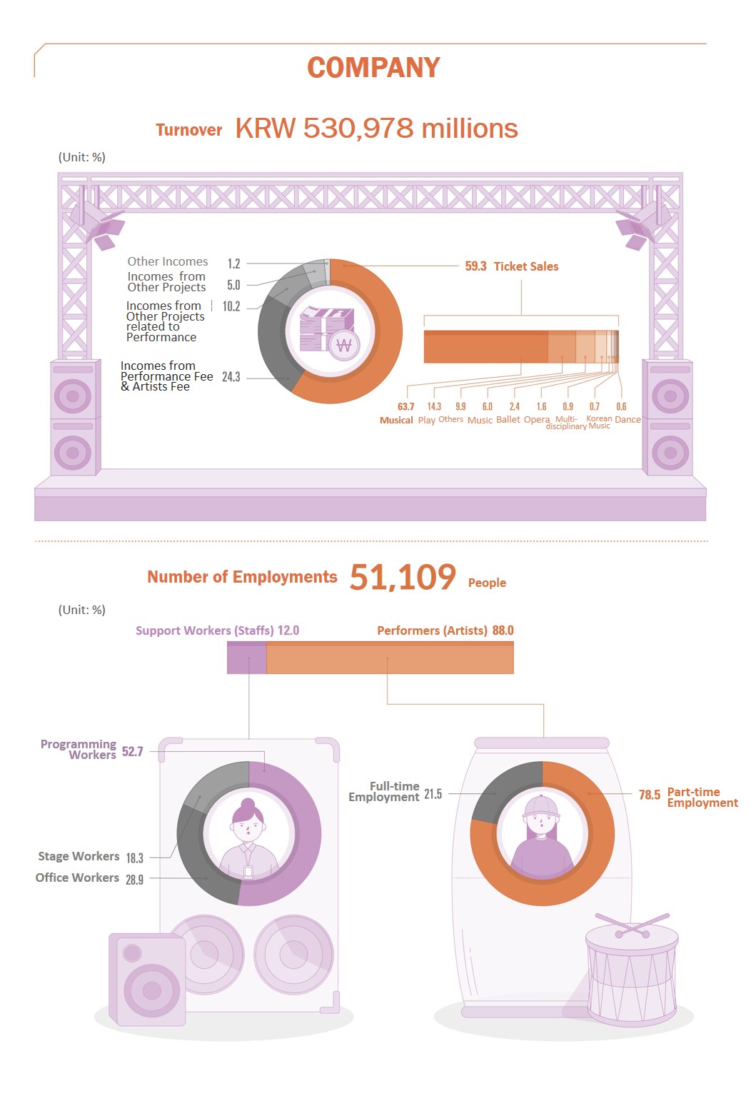 Korea Arts Management Service(KAMS) published a report about the Survey on The Performing Arts in 2019. According to the KAMS, total sales of performing arts in South Korea came to 853 billion won in 2019, up 3.6% from 2018.