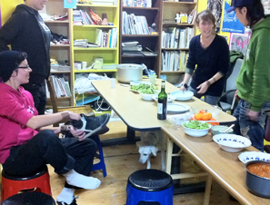 The first floor is equipped with an office, a recording studio, and two rooms where residency artists and guests from other regions can stay. There is also a band rehearsal studio in the basement. The gallery on the second floor has the space for various exhibitions, seminars, and workshops, along with work space for 5 to 6 residency artists. The residency artists from abroad and other cities often participate in AGIT’’s cultural planning between their works and get the chance to interact with the members of youth culture in the Busan region. Especially during the small and casual front yard parties, artists and young people with new faces really comfortably enjoy the food and drinks and interact with people. This kind of personal exchange and network are also few of the most important values of the AGIT.