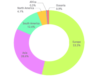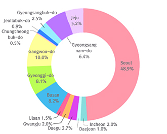 Out of the 264 domestic performing arts groups that performed internationally in 2011, 130 ventured abroad via festivals. This subgroup participated in 147 festivals and performed a total of 217 times, making up 26.1 percent of the total number of performances. In all, 116, or 53.5%, of these festival performances were at festivals in Europe. On the other hand, out of the 939 international performing arts groups that performed in South Korea, 563 groups participated in 108 domestic festivals, with 48.9% of these festivals based in Seoul.|