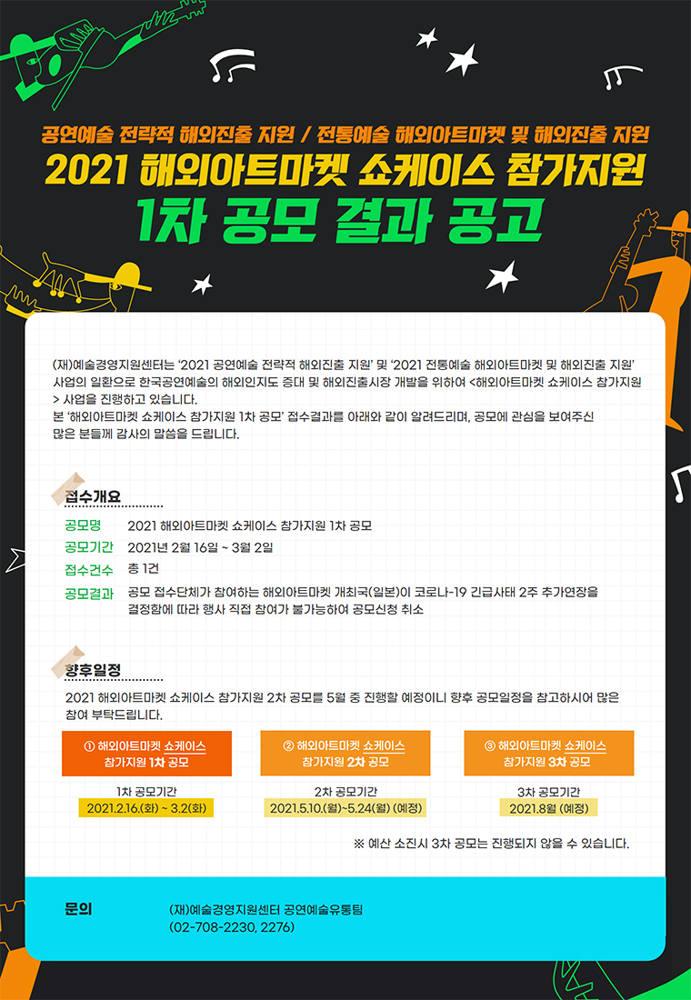 2021 해외아트마켓 쇼케이스 참가지원 1차 공모 결과 안내