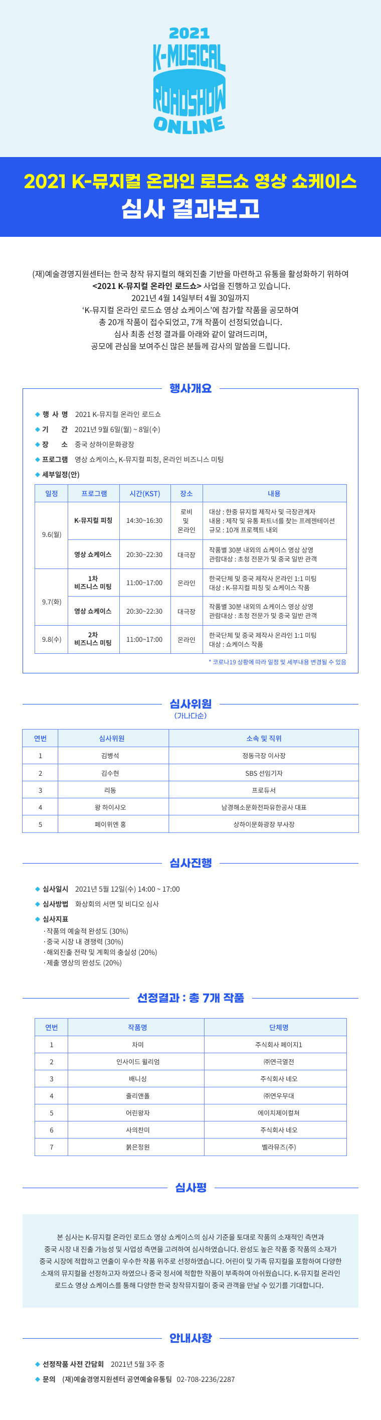 2021 저니투코리안뮤직(Journey to Korean Music) 프로그램 공모 선정결과 안내 | ||||