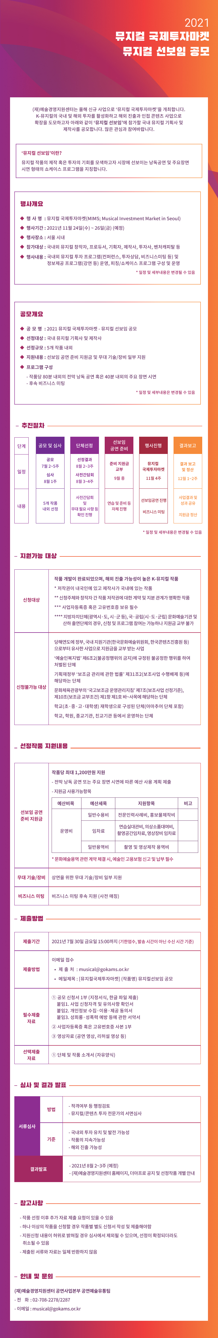 2021 뮤지컬 국제투자마켓 뮤지컬 드리밈 공모 최종 선정결과 안내 | ||||