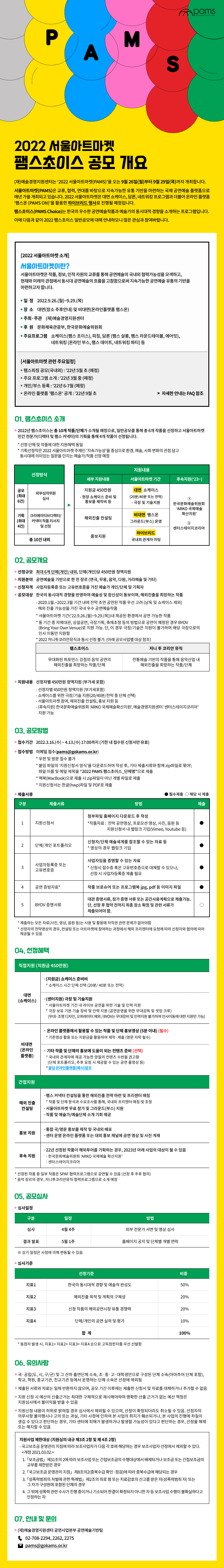 붙임1. 2022 팸스초이스 공모개요(0).pdf 2022 팸스초이스 공모 지원신청서_단체명(0).hwp 2022 팸스초이스 FAQ(0).pdf |