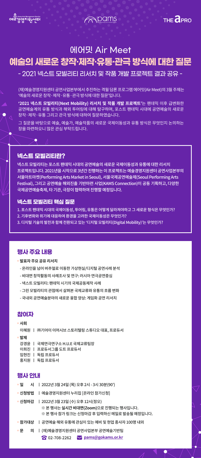 2022 서울아트마켓 에어밋 <예술의 새로운 창작·제작·유통·관극 방식에 대한 질문> 참가 신청
