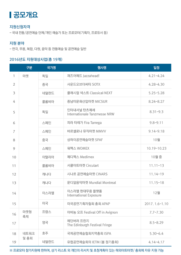 해외아트마켓 홍보지원-쇼케이스/프로모터 참가지원 1차 공모 안내_마감 : 3월 8일