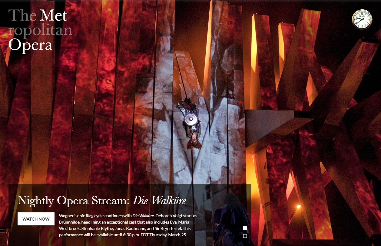 뉴욕 링컨 공연 예술 센터 내에 위치한 메트로폴리탄 오페라 하우스에서는 매일 공연 한 편을 제공하는 Nightly Opera Stream 서비스를 시작했다.