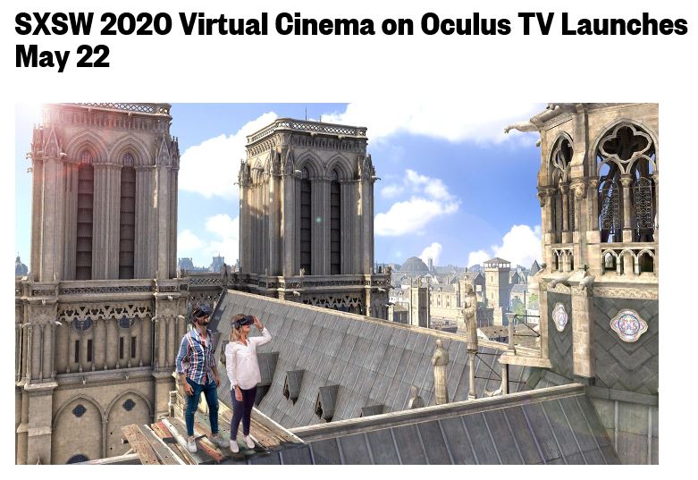 5월 22일 사우스 바이 사우스웨스트 (South by Southwest, SXSW)는 오큘러스 TV와 함께 SXSW 2020 가상 영화관을 전세계적으로 런칭했다.