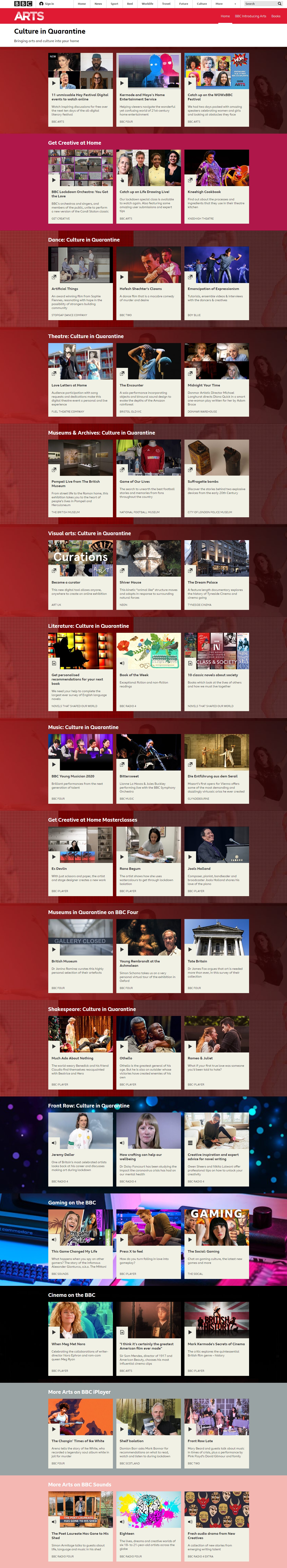 코로나19의 영향으로 영국 전역이 폐쇄되면서 영국 국영방송 BBC는 문화예술에 대한 대중들의 접근성을 유지시키고 예술가들과 문화예술 기관들에게 도움을 주고자 Culture In Quarantine 프로그램을 개설했다.