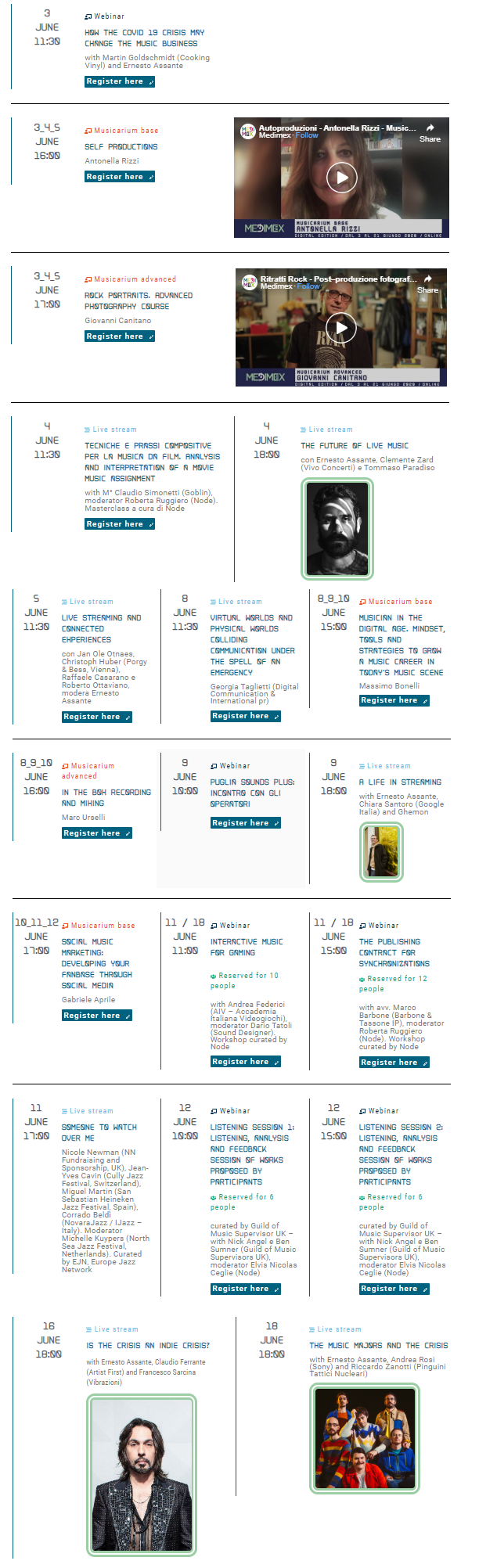 국제 음악 페스티벌 및 컨퍼런스를 개최하는 메디멕스(Medimex)는 6월 3일부터 6월 18일까지 2020 Digital Edition 웨비나(Webinar)를 진행한다.