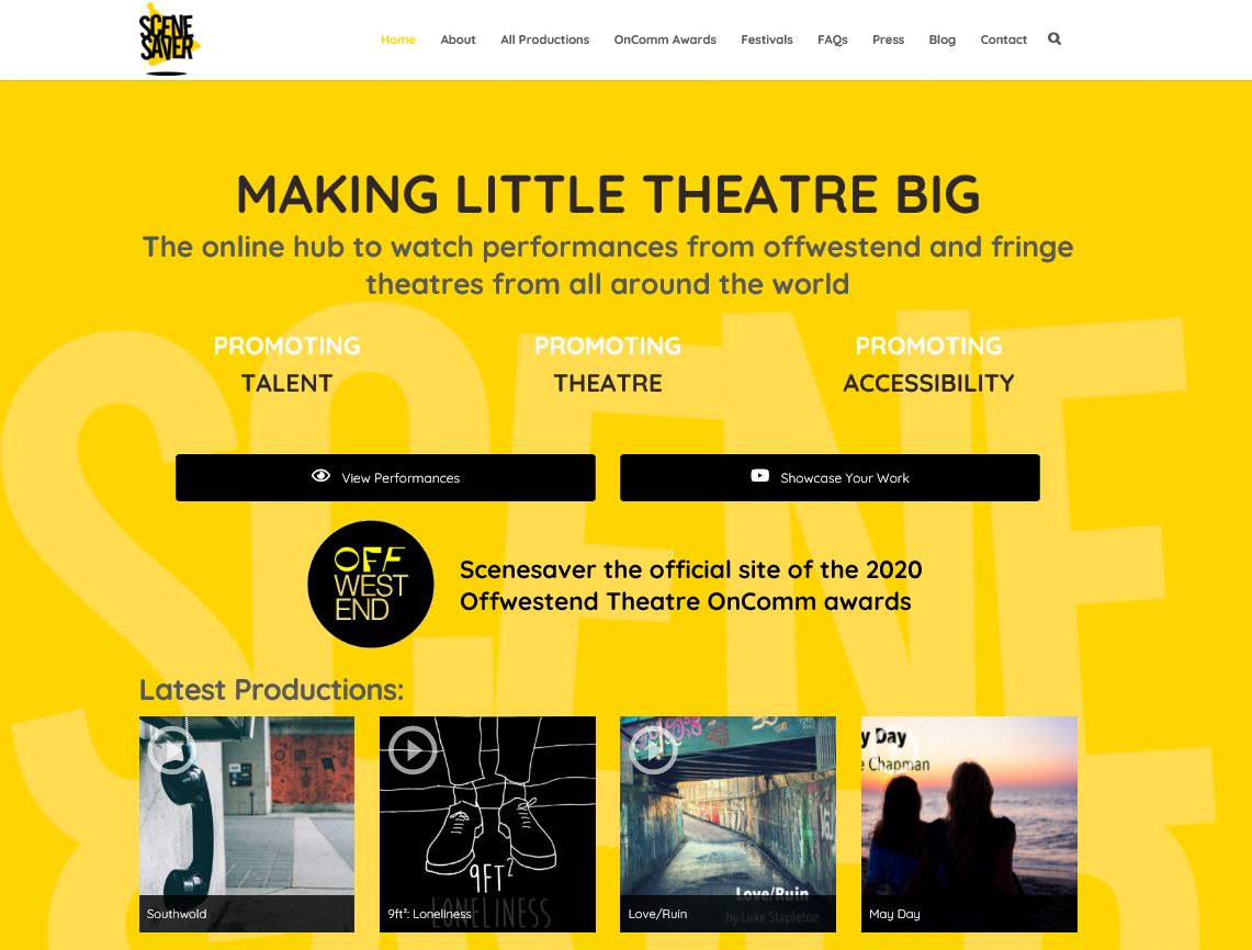영국 프로듀서 캐롤린 프라이드만(Caroline Friedman)이 OffWestEnd.com 사이트와 협력해 Off-West End 및 Fringe 소규모 제작사 및 극장 작품들을 위한 온라인 공연예술 영상 플랫폼 ’Scenesaver’를 런칭했다.