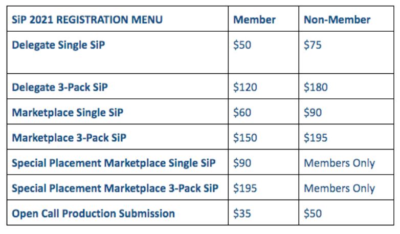 SiP 2021 등록 비용은 아래 표와 같다.