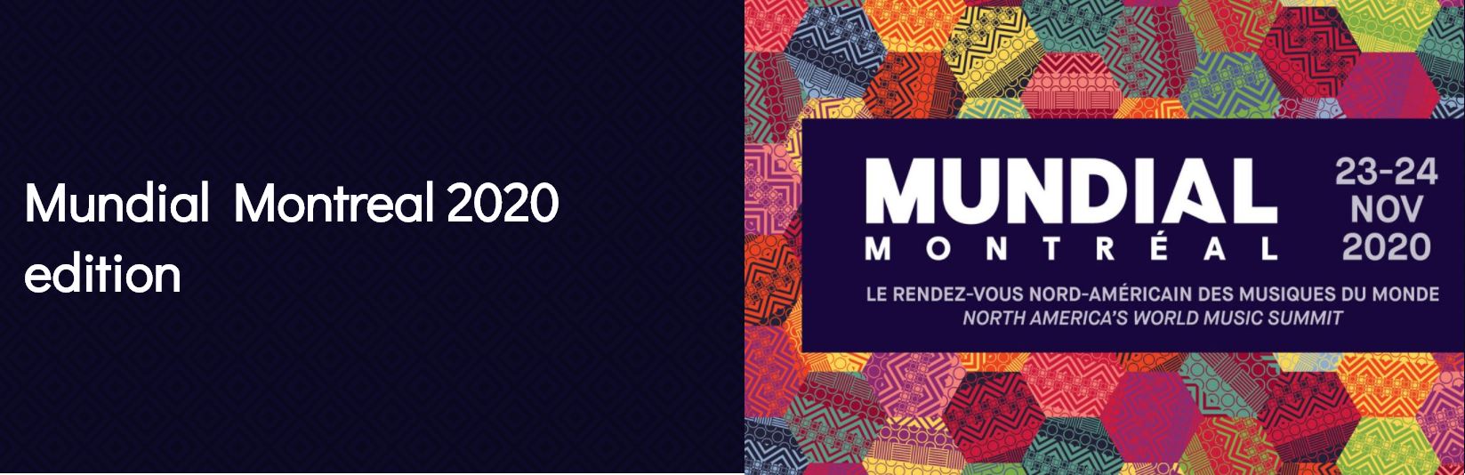 문디알 몬트리올(Mundial Montreal)은 11월 18일부터 28일까지 열흘 간 문디알 2020 스페셜 에디션(Mundial 2020 Special Edition)을 전문화된 알고리즘에 의해 디지털 플랫폼에서 운영할 예정이다.
